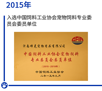 2015年入選中國飼料工業協會寵物飼料專業委員會委員單位